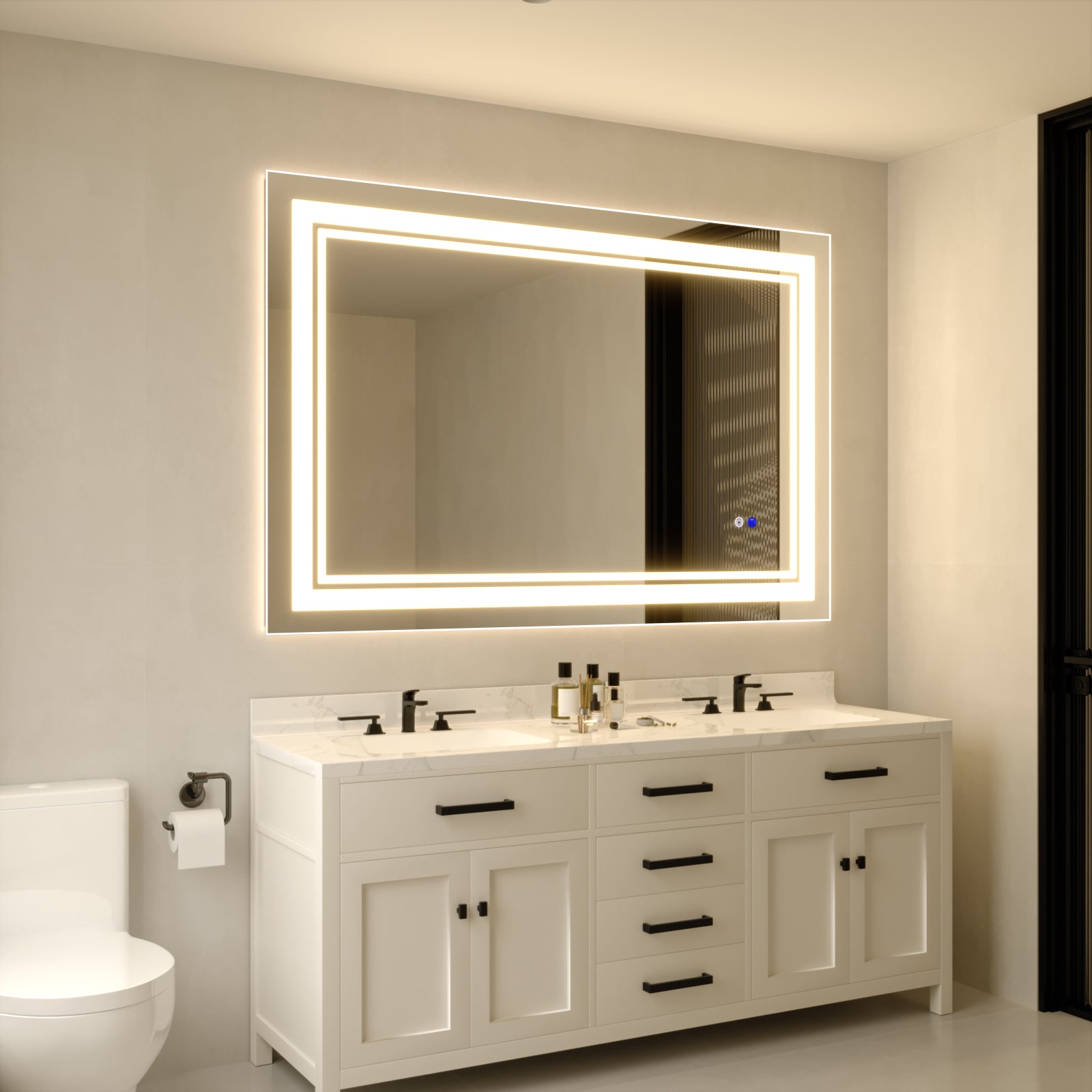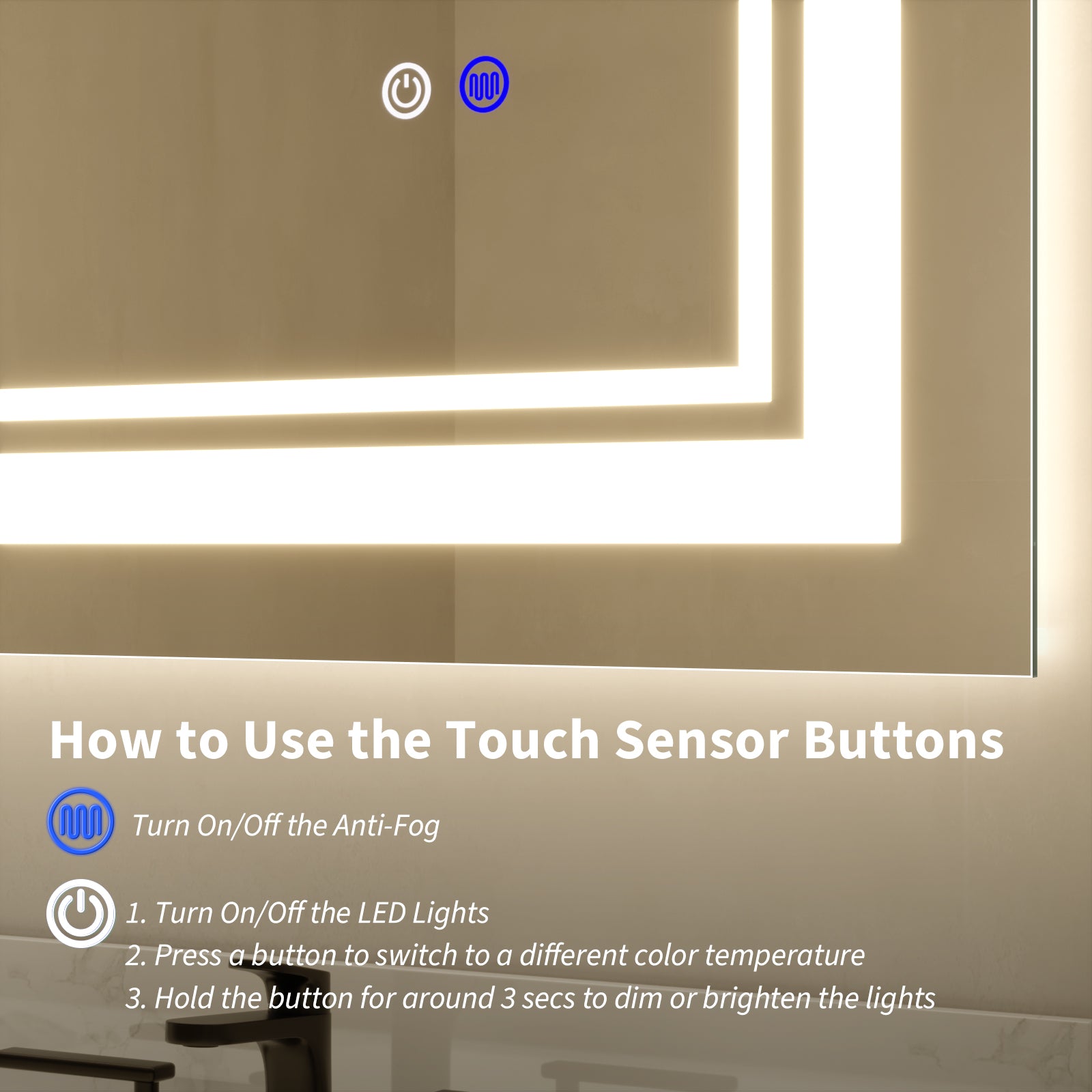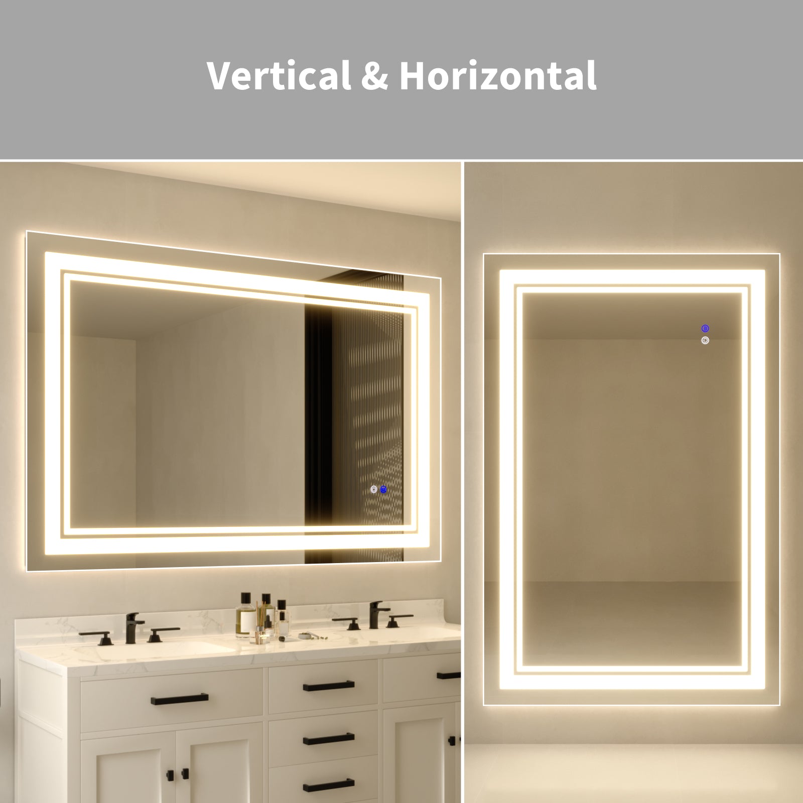 - 【Anti-Fog】Say goodbye to the foggy mirrors after a steamy shower, by turning on the anti-fog function button, it can eliminate condensation and steam, ensuring your LED bathroom mirror is fog-free.
