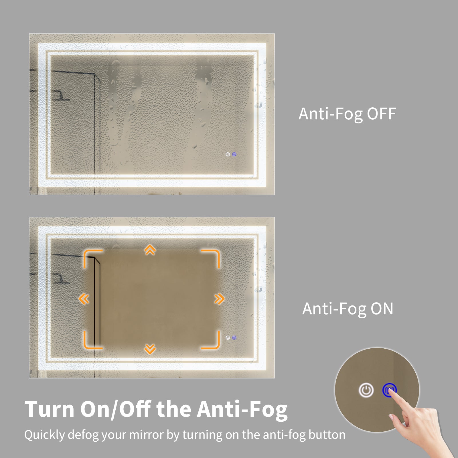 55"x36" LED Bathroom Mirror, Anti-Fog Memory Setting, 3 Colors Dimmable Lighted Bathroom Mirror Wall Mounted