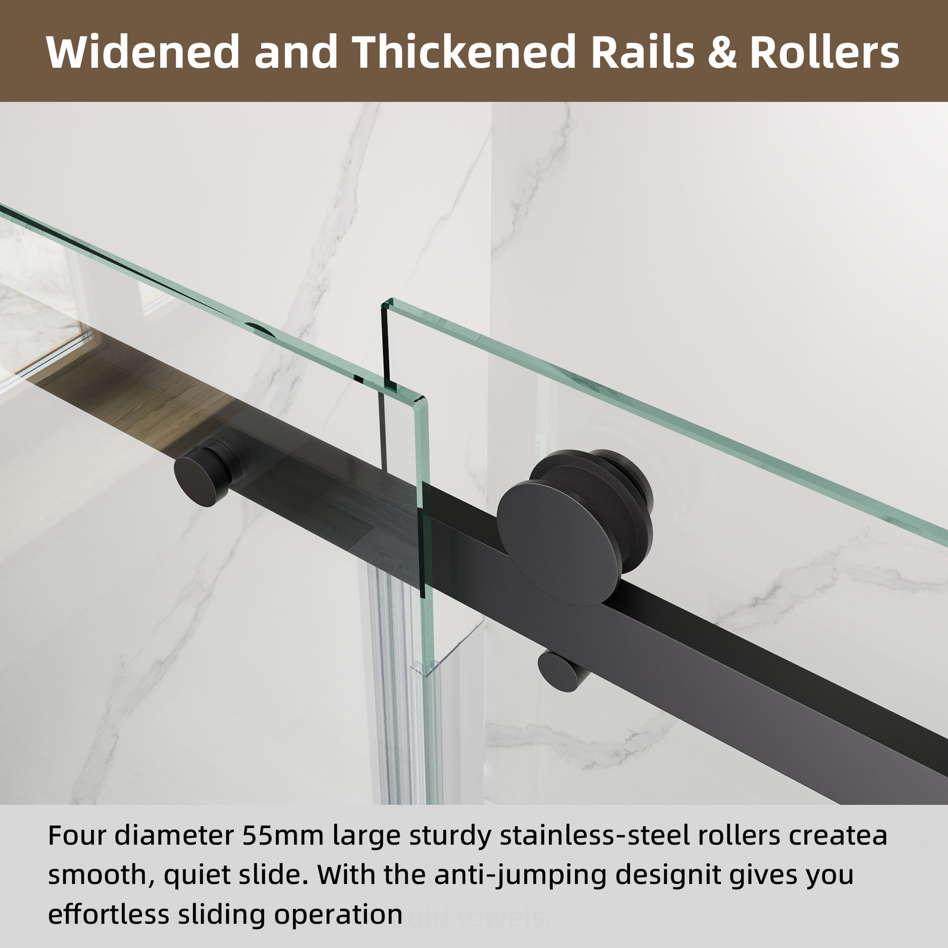 - Semi-Framed Single Swing – Modern Black/Nickel Finish with Silent Rollers