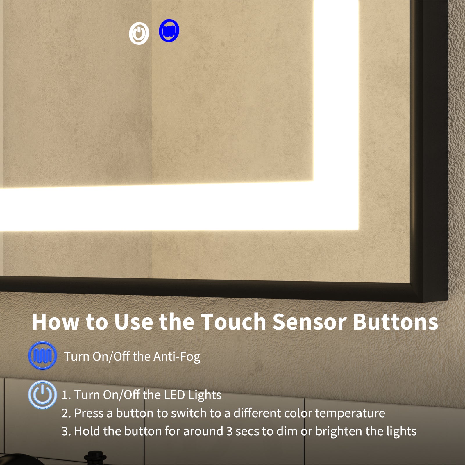 60"x40" LED Bathroom Mirror with Black Frame, Anti-Fog Memory Setting, 3 Colors Dimmable Lighted Bathroom Mirror Wall Mounted