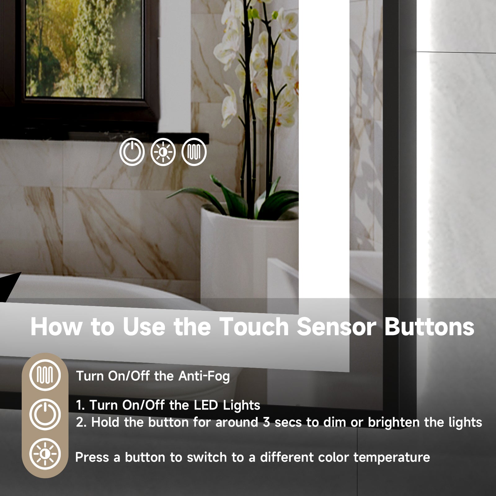 - Anti-Fog Mirror: Say goodbye to foggy mirror with our bathroom led mirror. Equipped with advanced anti-fog technology, it can turn off automatically after one hour. This bathroom mirror with light ensures a crystal-clear reflection every time, even after a hot shower