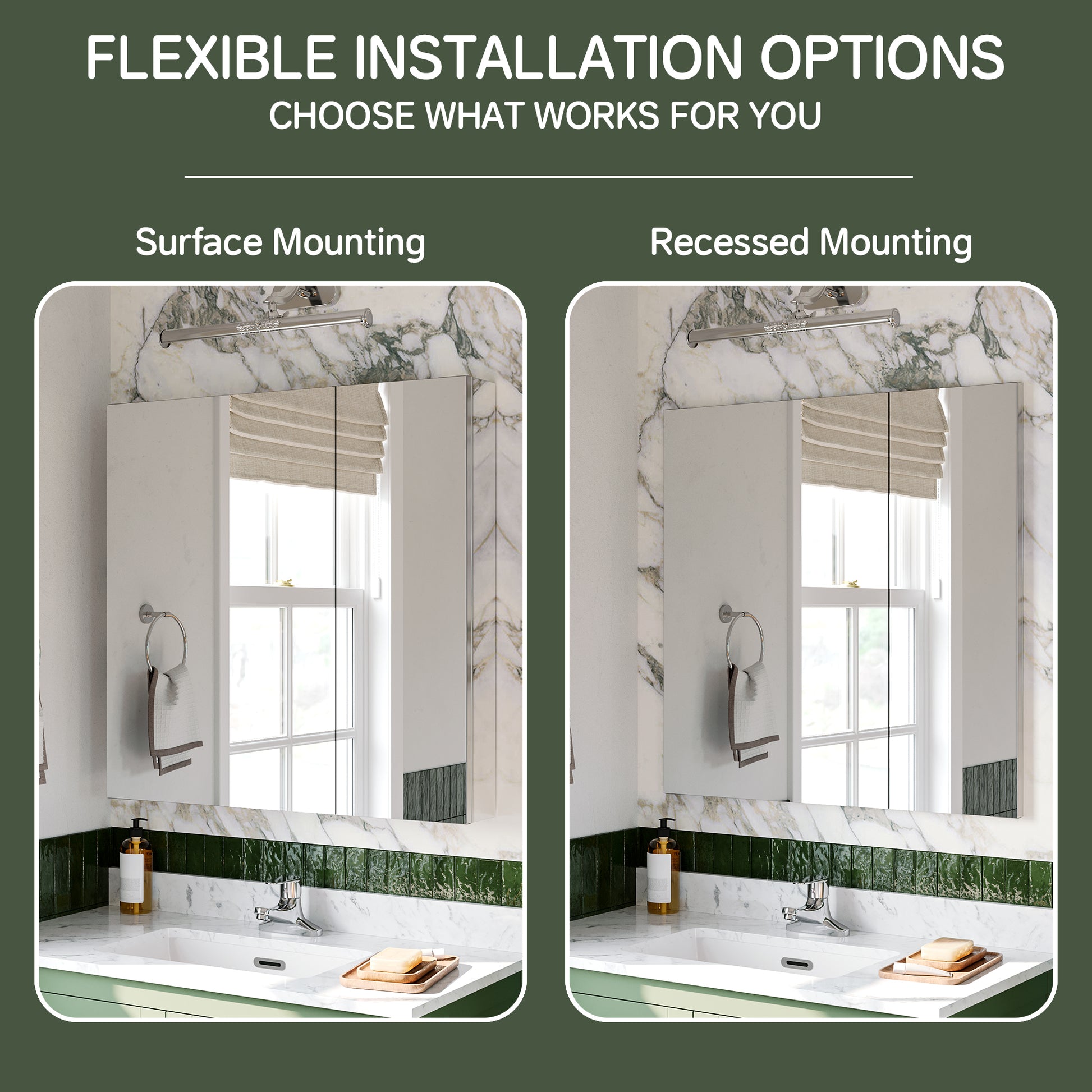 Double Door Premium Medicine Cabinet with Mirror – 30" x 30", Surface or Recessed Mount