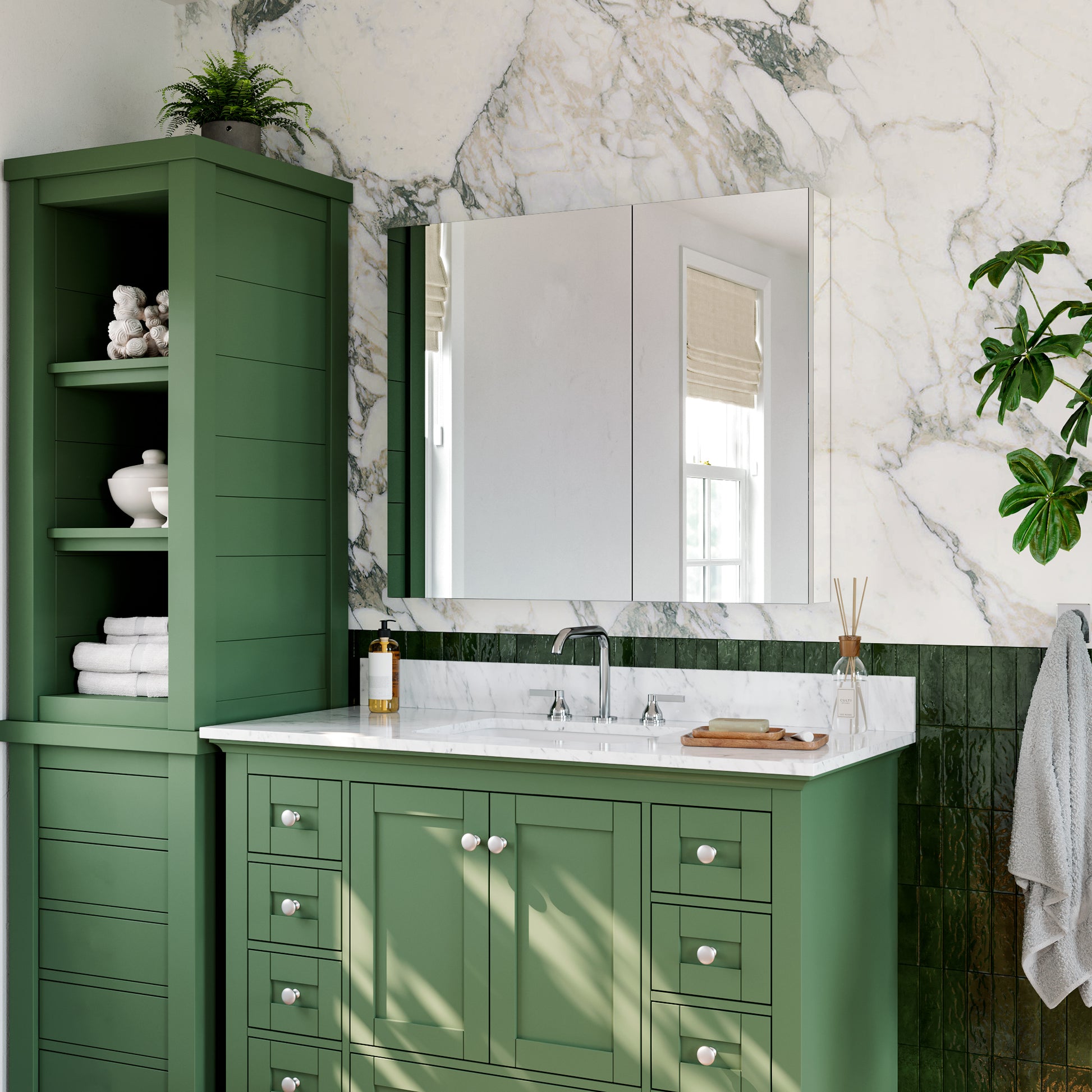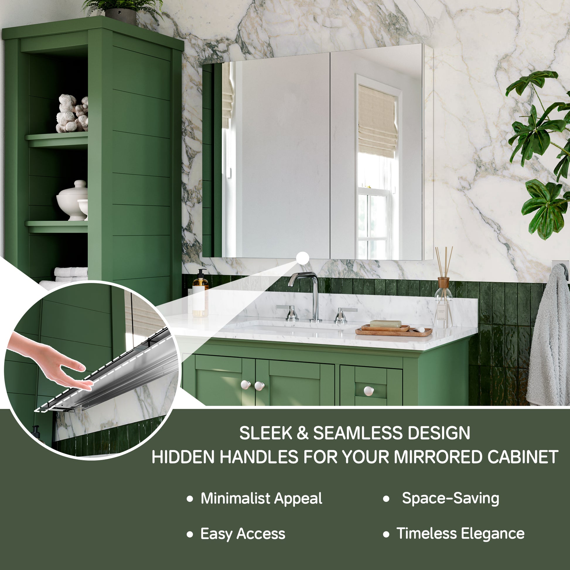 ✅ Bi-View Door Design: The dual-panel bi-view door allows for easy access to your essentials while adding a modern aesthetic to your bathroom.