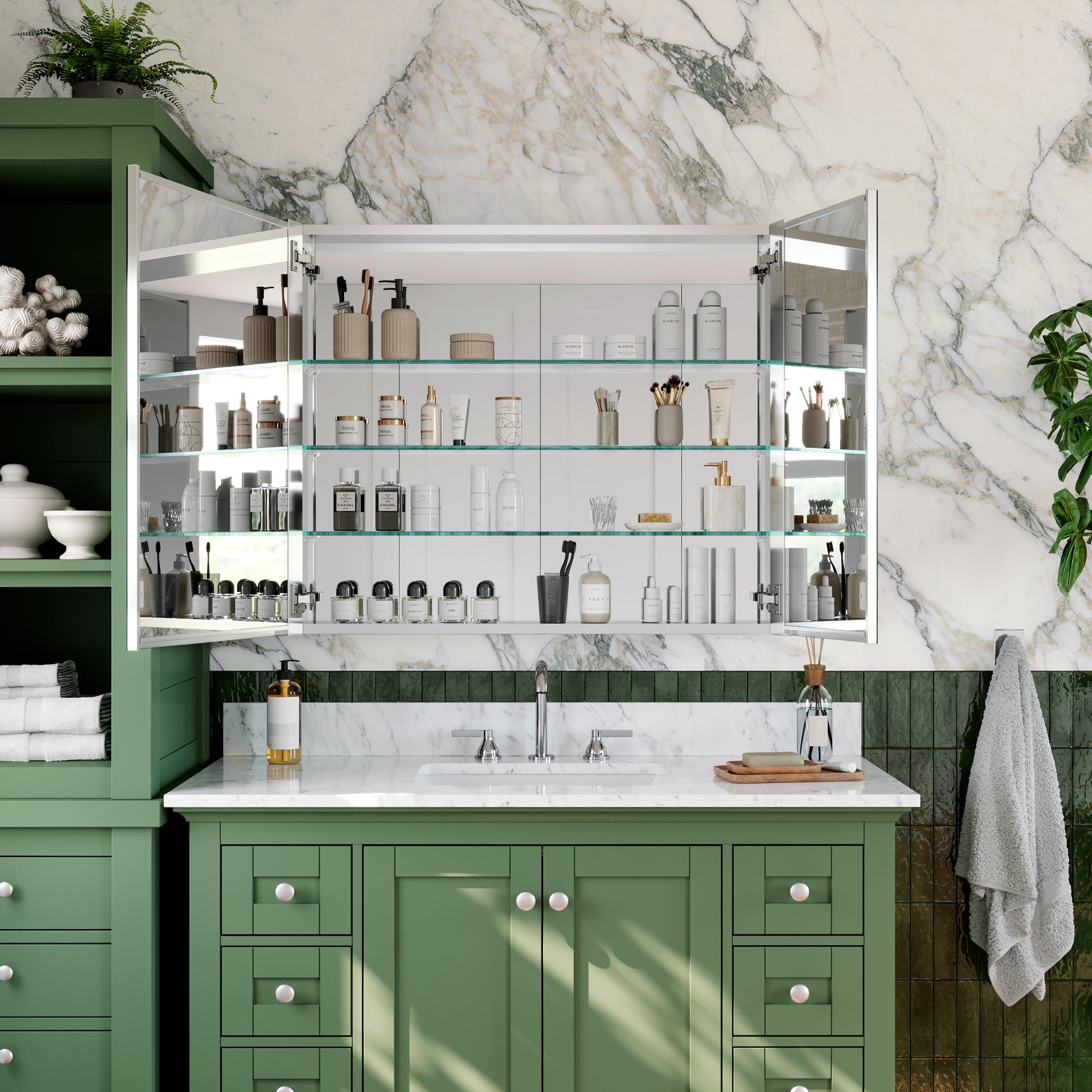 ✅ Anodized Chrome Aluminum Body: Crafted from high-grade anodized aluminum, the cabinet is rust-resistant, lightweight, and built to last. The sleek chrome finish adds a modern and sophisticated touch to your bathroom.