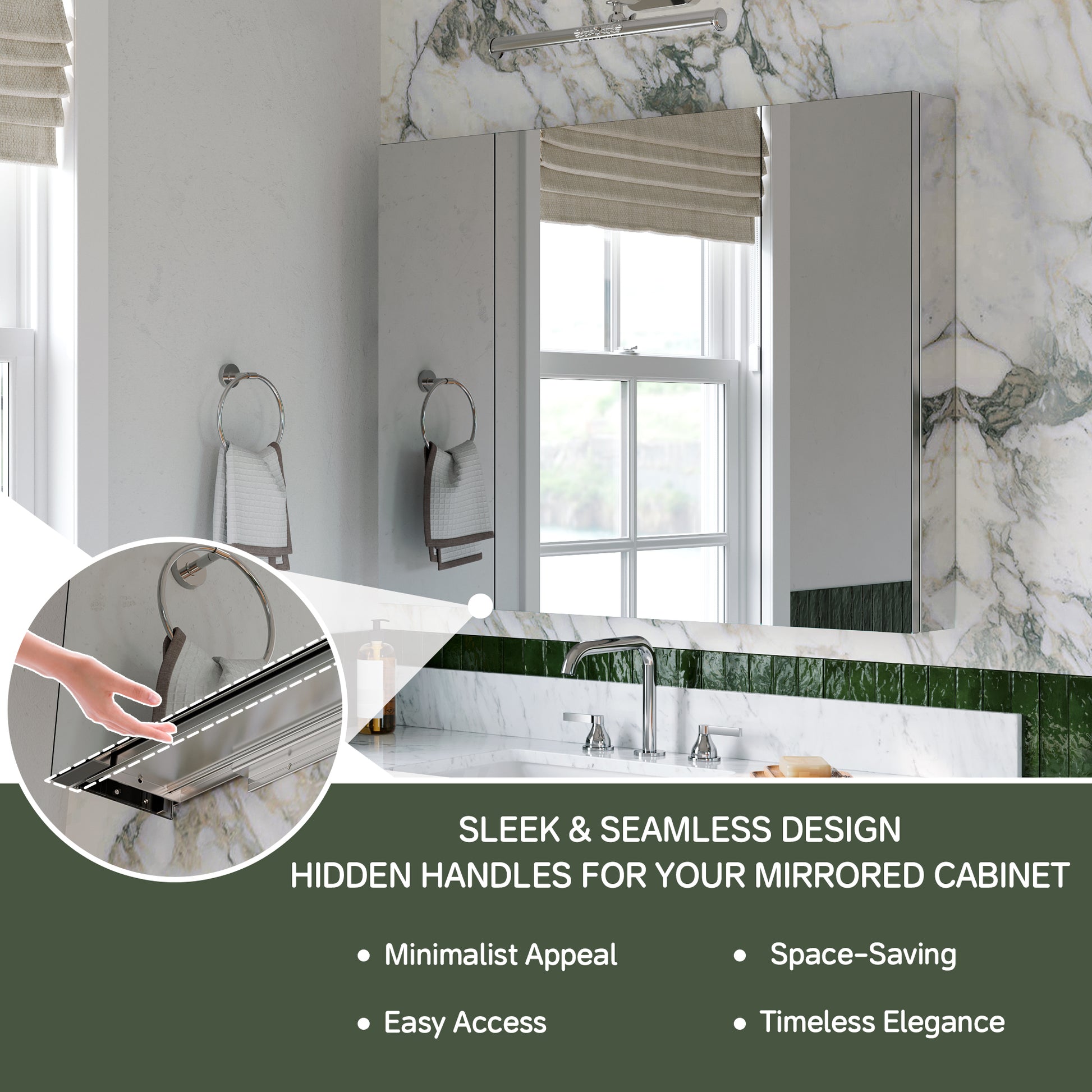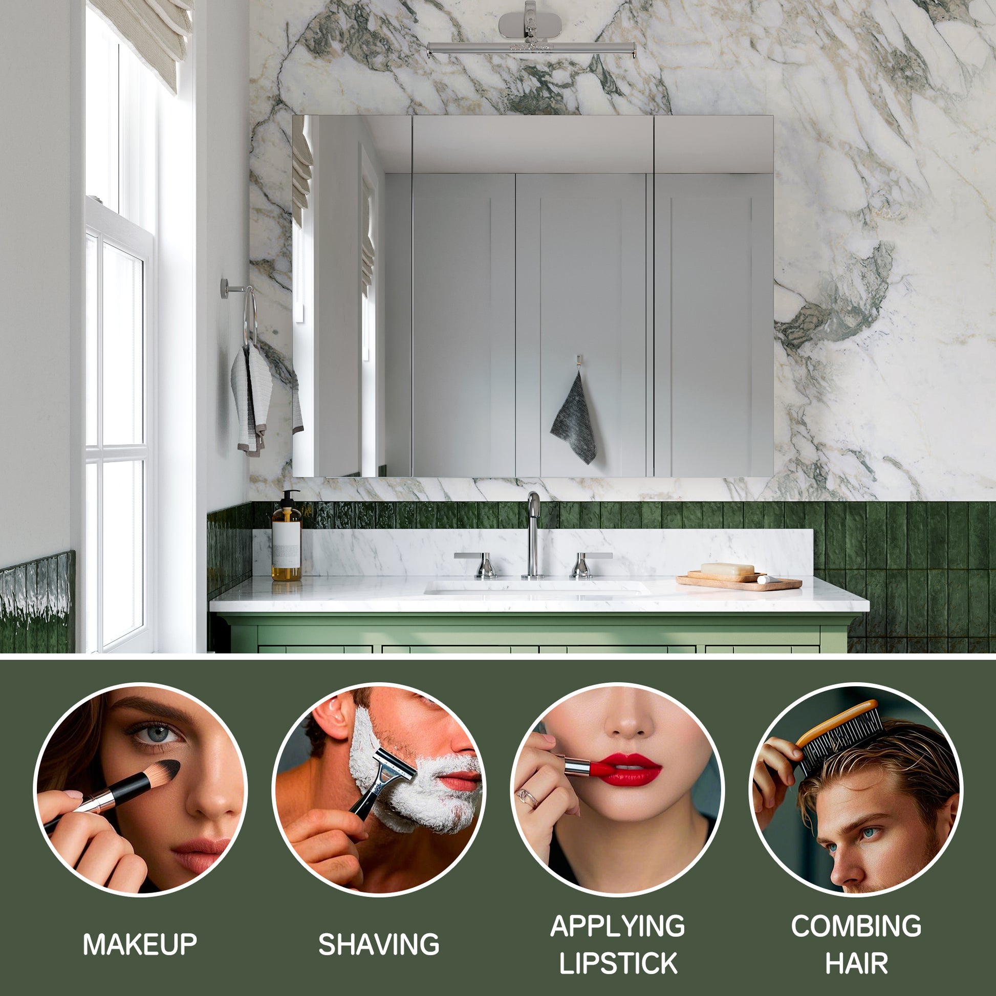 ✅ Tri-View Glass Mirrors: The trifold mirrored doors provide multiple viewing angles, allowing you to check your appearance from different perspectives—perfect for grooming, makeup, and daily routines.