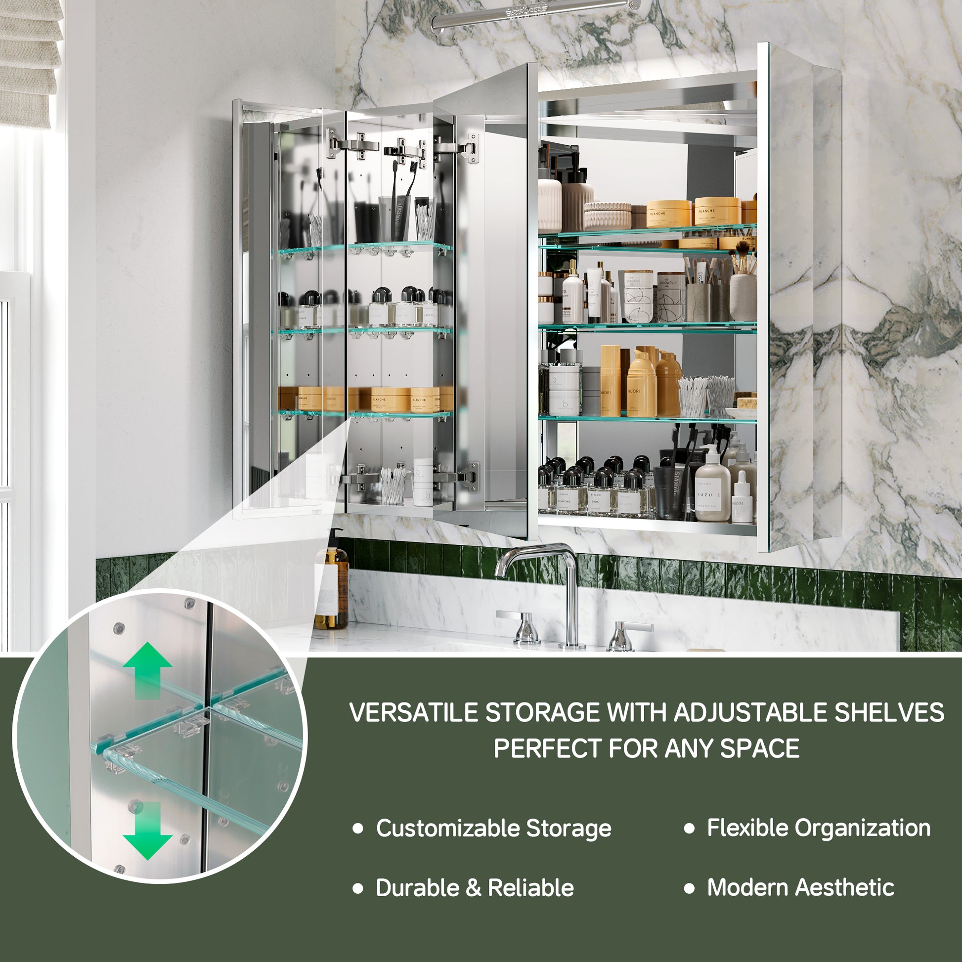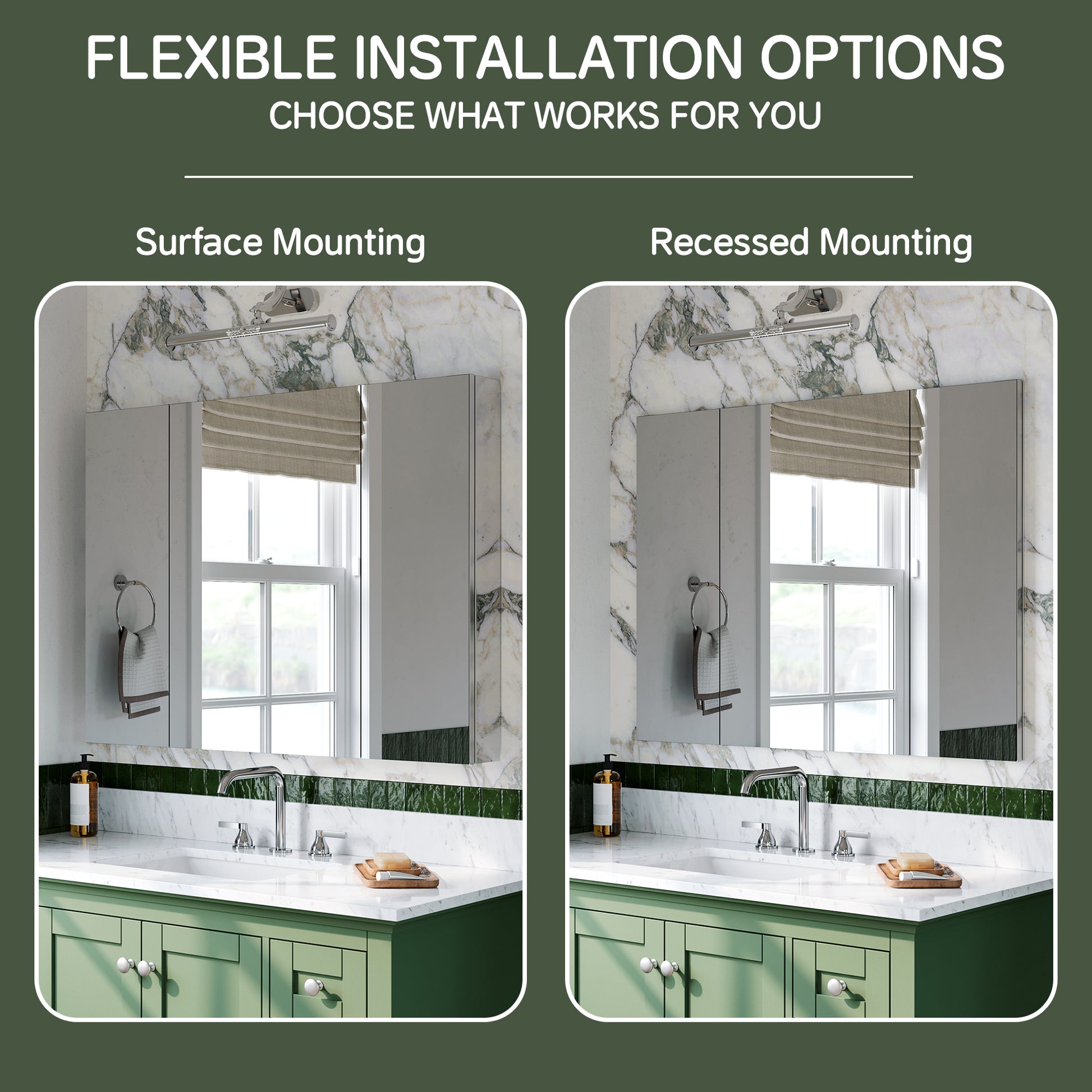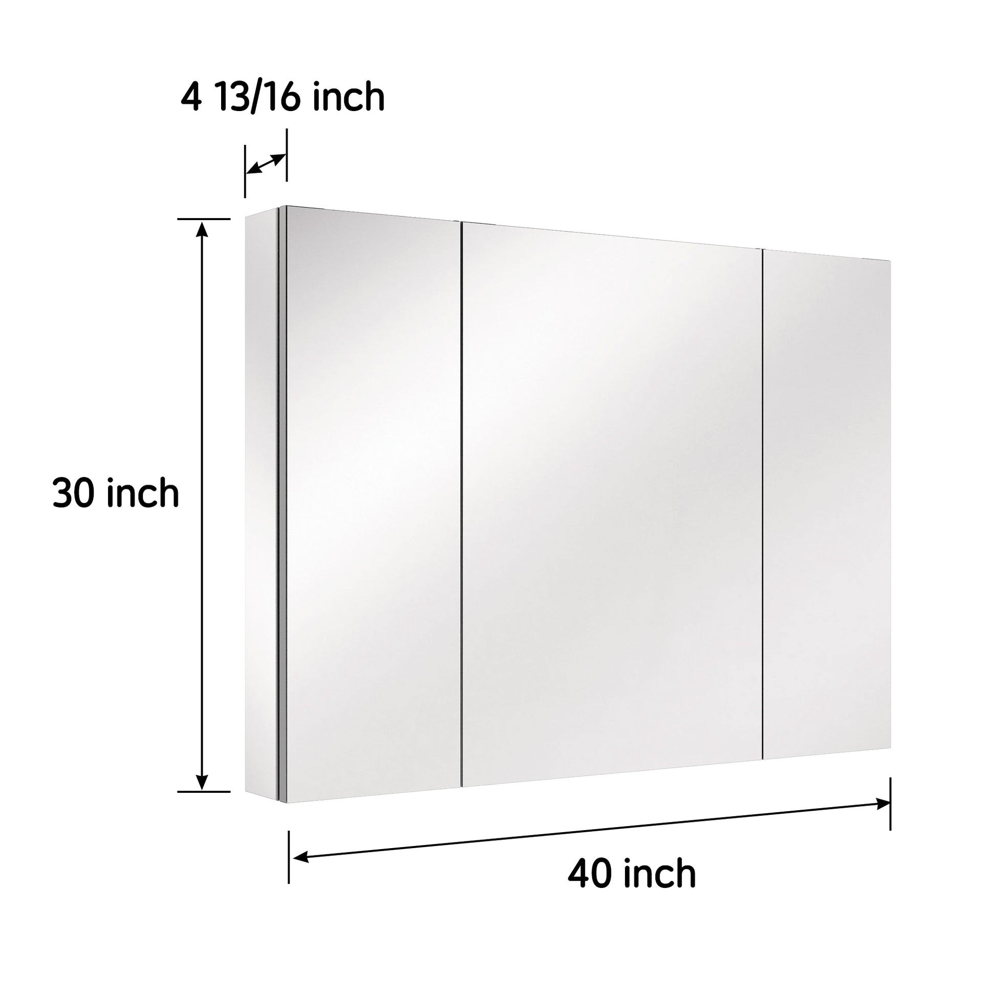 Triple Door Premium Medicine Cabinet with Mirror – 40" x 30", Surface or Recessed Mount