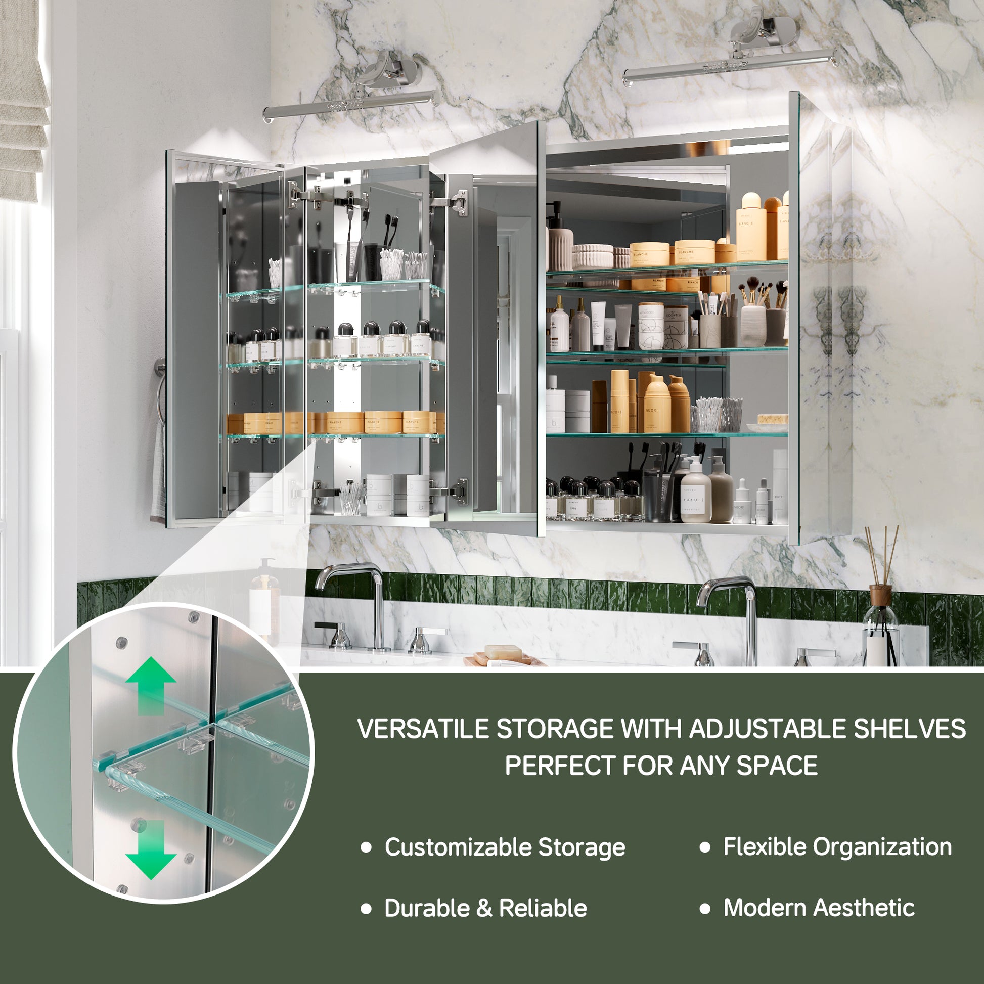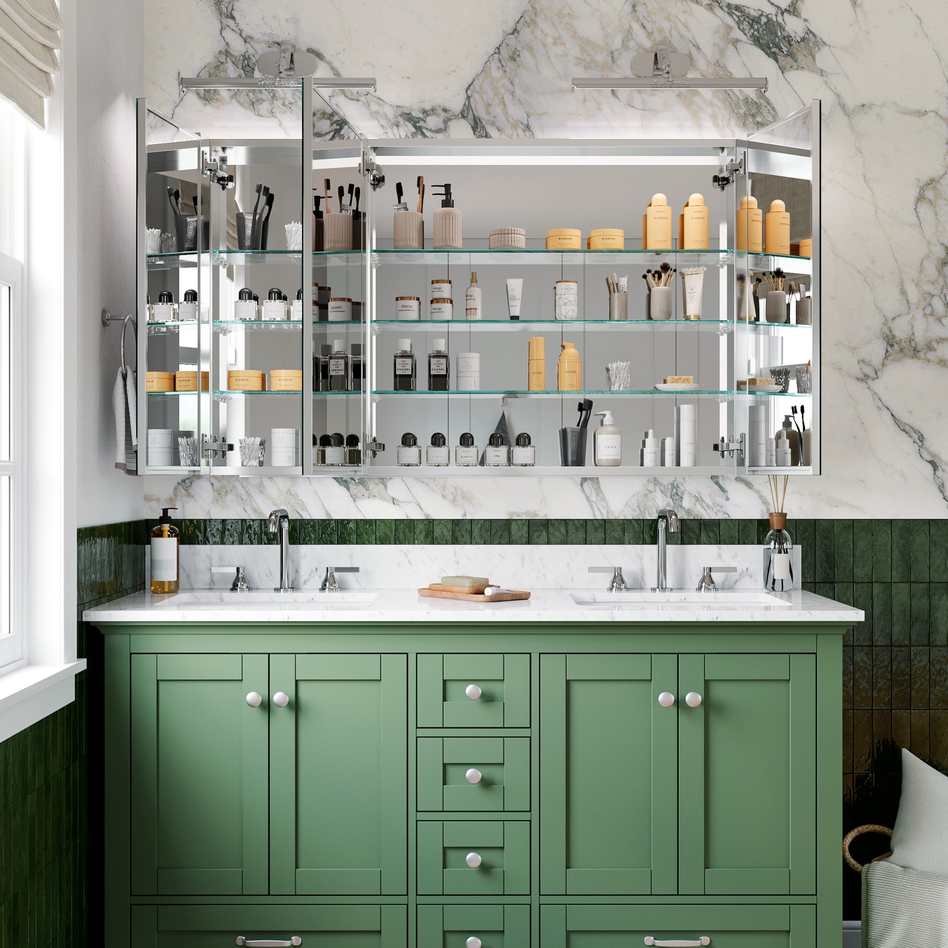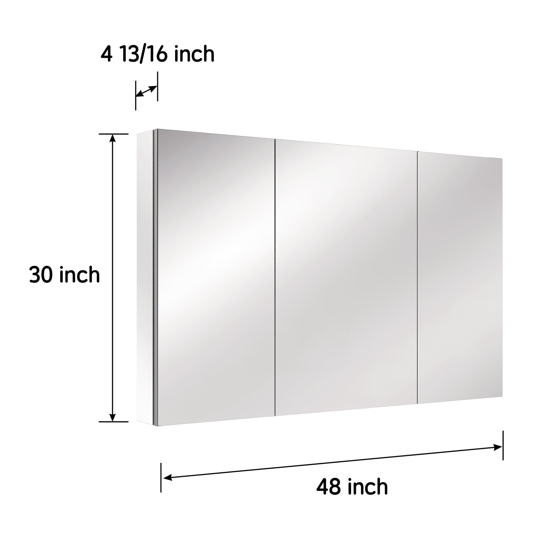 Triple Door Premium Medicine Cabinet with Mirror – 48" x 30", Surface or Recessed Mount