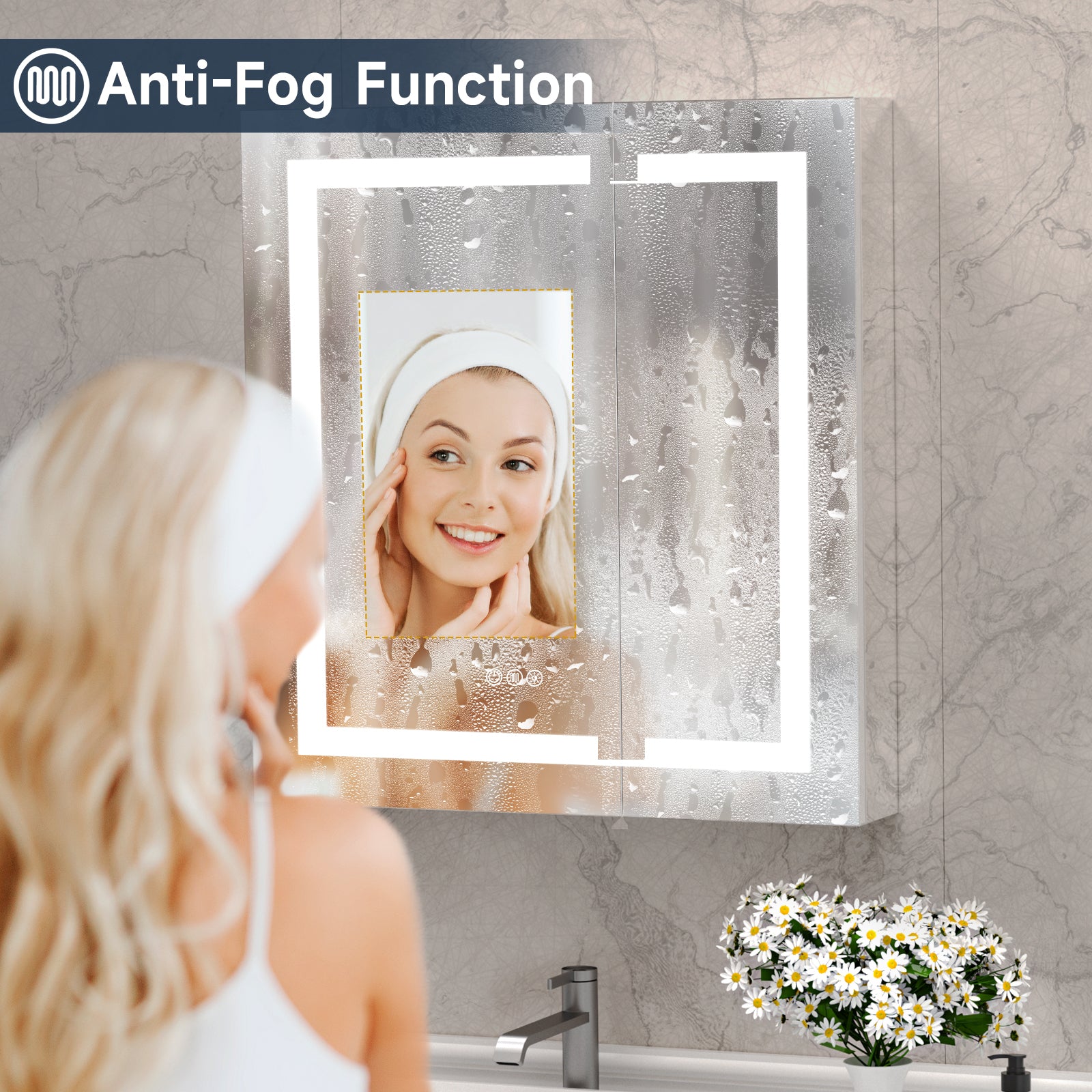 Lighted Mirror Medicine Cabinet 30"X32", Anti-Fog 3 Colors Dimmable LED, Built-in Outlets and USB Ports