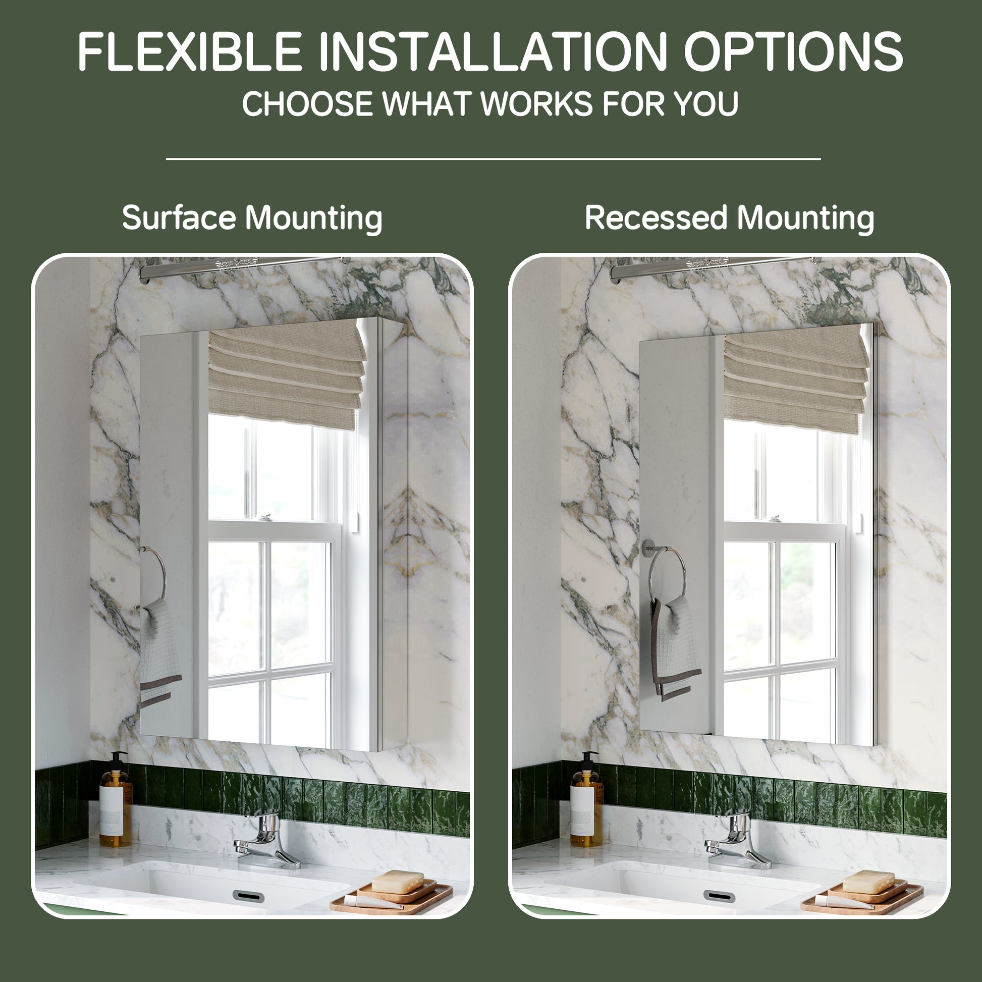 Premium Medicine Cabinet with Mirror – 20" x 30", Surface or Recessed Mount