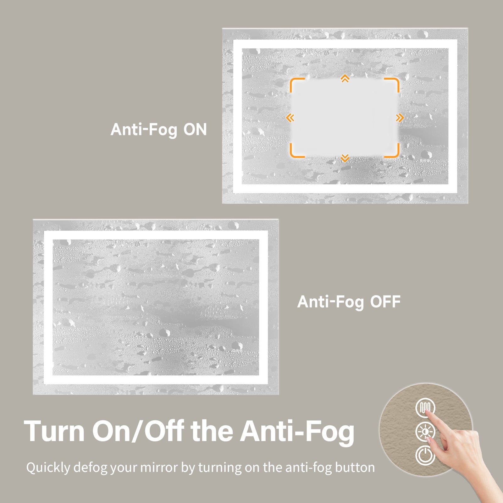 - Anti-Fog Mirror: Say goodbye to foggy mirror with our bathroom led mirror. Equipped with advanced anti-fog technology, it can turn off automatically after one hour. This bathroom mirror with light ensures a crystal-clear reflection every time, even after a hot shower